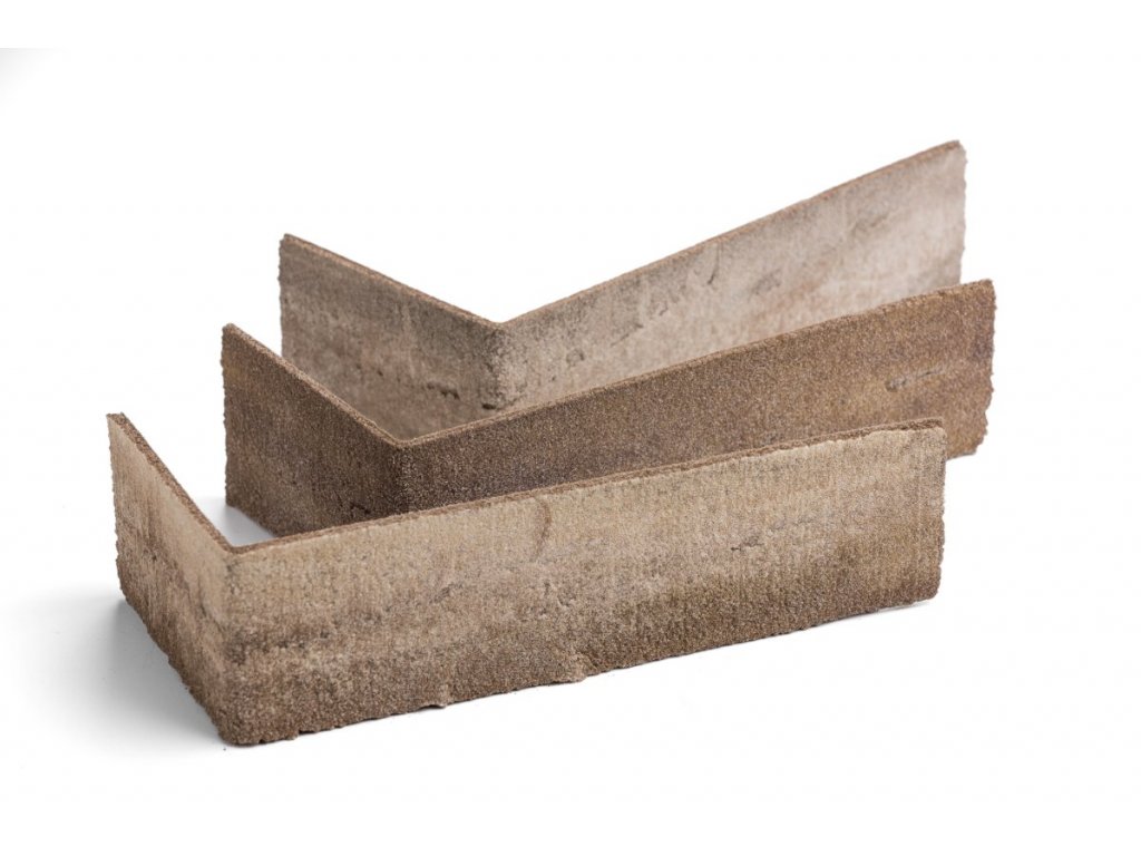 Rohový cihlový obklad pro obložení vnějších rohů. Rohové obklady Elastolith - Elabrick jsou dodávané již předohnuté do pravého úhlu, nehrozí tak prasknutí obkladu při jeho ohýbání. S pomocí těchto prvků je obložení rohů velice snadné a rychlé.